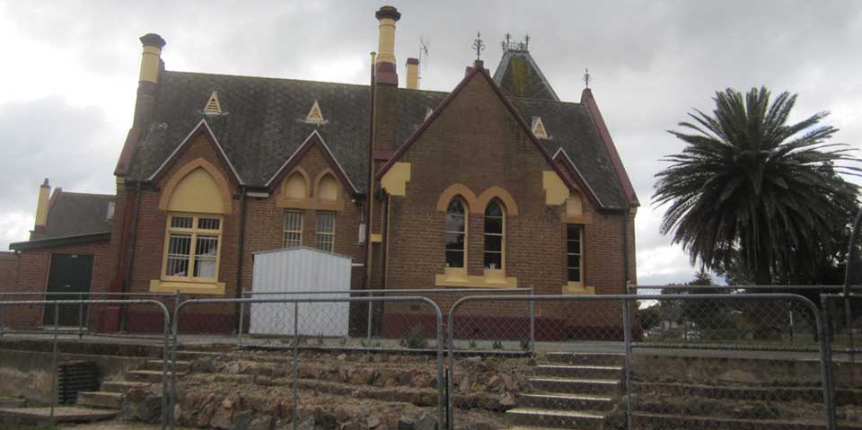 This building, built circa 1877 is a single story building with external and internal masonry load bearing walls. The timber roof structure consists of rafters supported by underpurlins and timber trusses.