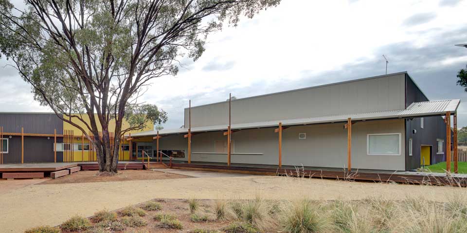 This centre has been designed to retain an existing eucalypt on site as a focal point for an outdoor community hub at the front of the building. This outdoor space was developed as a reference to the story of the Red Chief and the defeat of a warring tribe by using the Wallaby Trap at the base of Porcupine Hill to his tribe’s advantage.